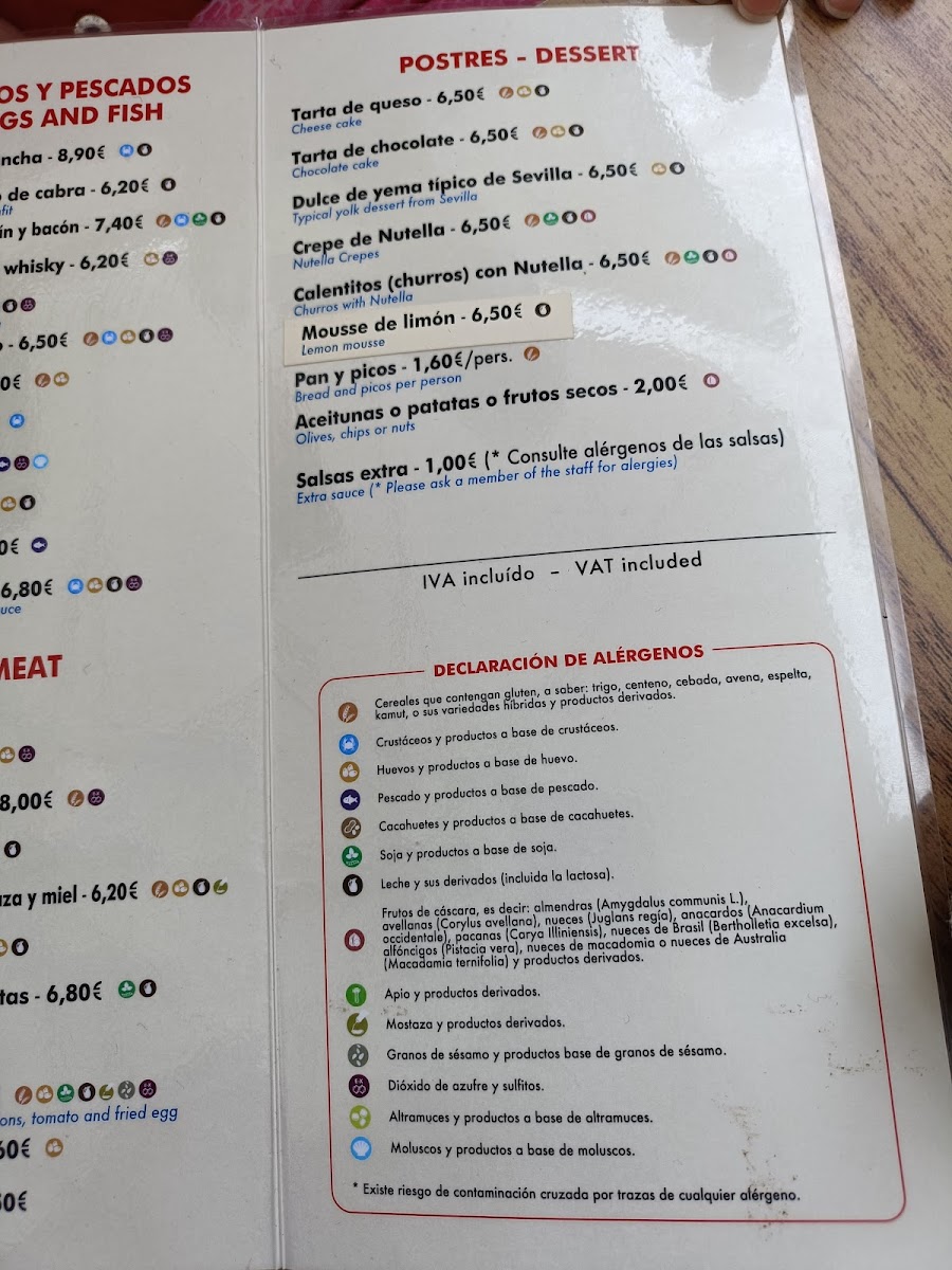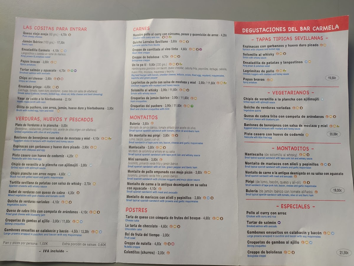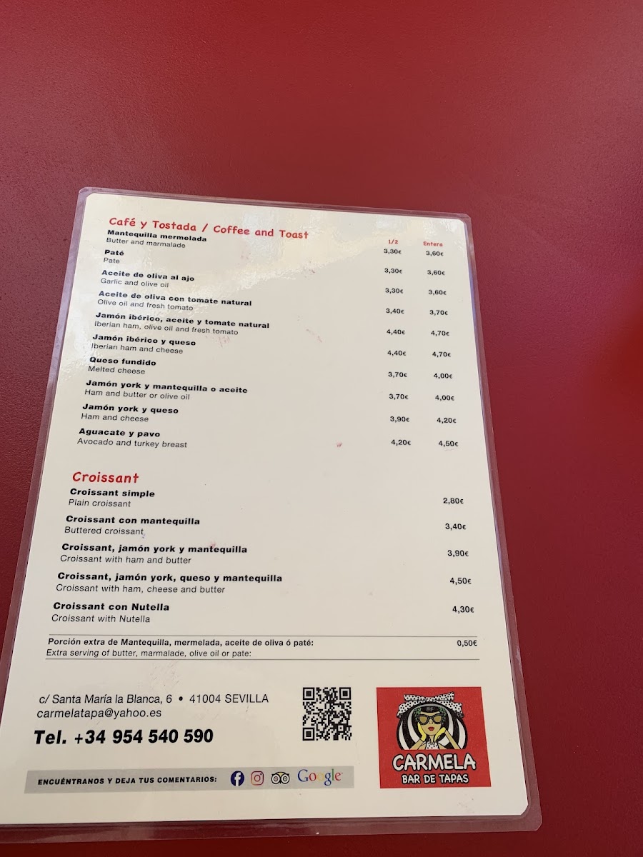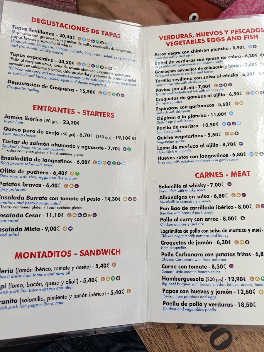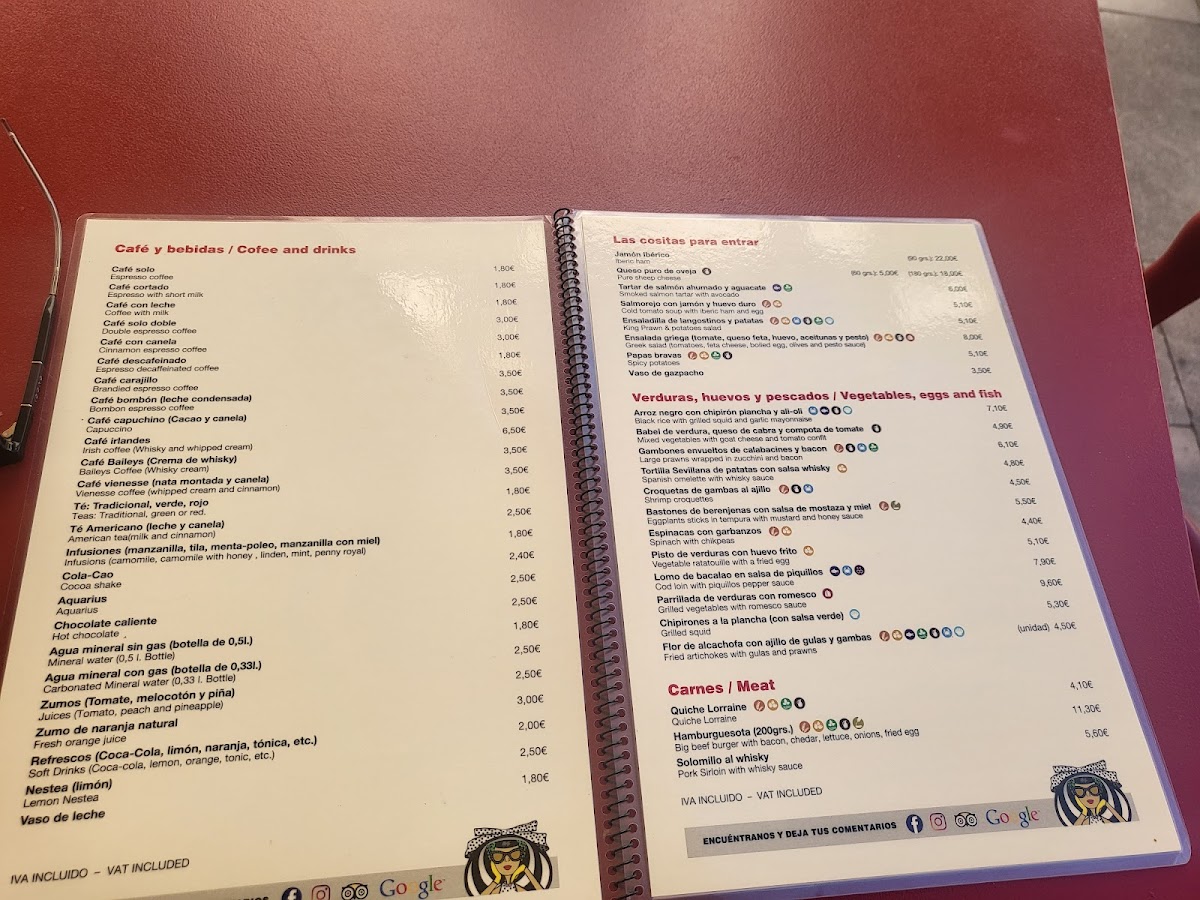 In addition to food, the beverage selection includes classic Spanish drinks such as tinto de verano and vermouth, complemented by wine and other refreshments suitable for casual dining. The menu accommodates different times of day, offering options that work well for breakfast, light meals, or snacks throughout the day.